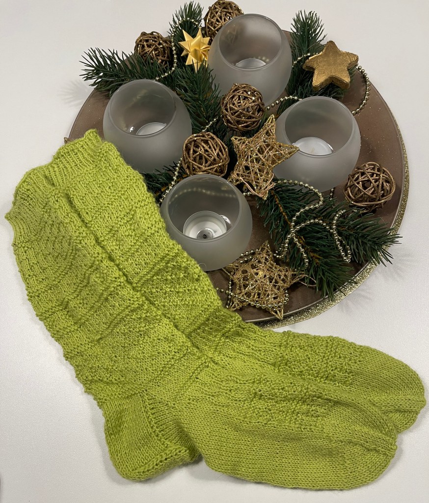 Das erste Paar Socken nach der Anleitung von Tanja Steinbach für die Socktober Socken ist fertig geworden. Leider erst im Dezember, daher sind es nun Sockzember Socken.